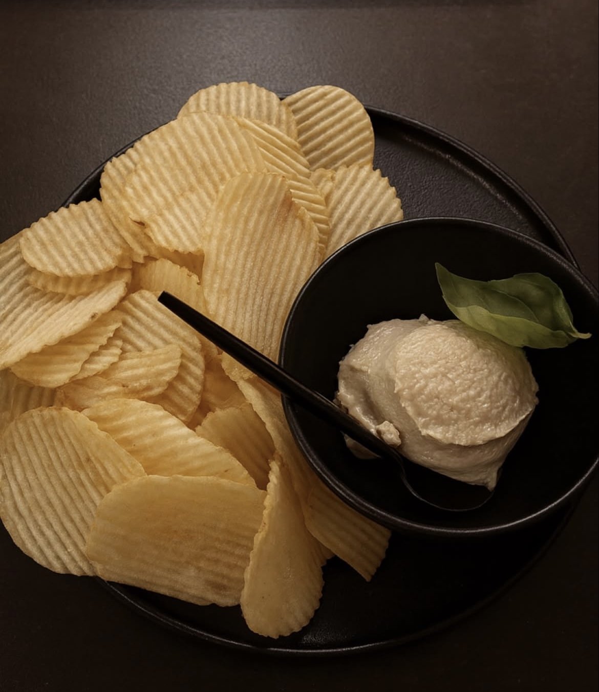 A rotating selection of cheeses from La maison des saveurs, Première Moisson baguette, charcuterie meats, seasonal fruits (such as grapes, raspberries, blueberries or strawberries), & cherry tomatoes. Small board.